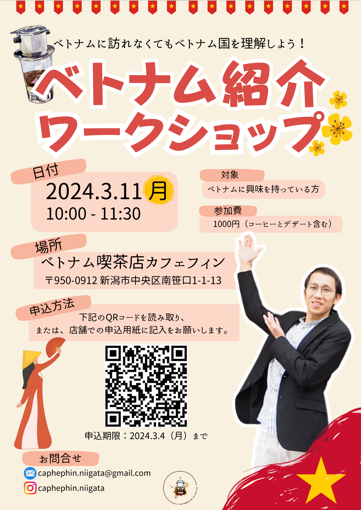 Nét Đẹp Ẩm Thực và Văn Hóa Việt Nam tại CAPHEPHIN, Niigata, Nhật Bản: Gỏi cuốn Việt Nam Bạn có yêu thích văn hóa và ẩm thực Việt Nam? Bạn muốn tìm hiểu về những món ăn truyền thống và những câu chuyện văn hóa thú vị từ Việt Nam? Hãy đến với workshop giới […]